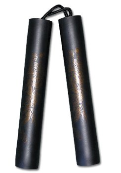 8inches Foam Nunchuck black w/cord Safe nunchucks for kids! A 3/4inches diameter PVC core tube covered with a 1/4inches thick black foam skin. Much more substantial than the plastic toy versions, better for youth training. Double nylon cord joint.