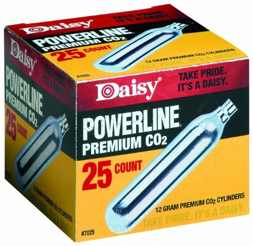 Daisy CO2 cylinders offer a top-quality, clean, dependable gas source for your airgun shooting that will deliver consistent, reliable shots. Standard 12 gm CO2 cylinders fit most CO2-powered airguns. Pack of (25) 12 gram CO2 cylinders.