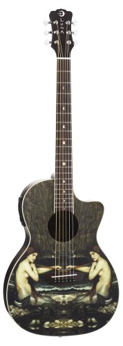 Graced front and back by the popular artwork of Victorian painter John Waterhouse, Luna's Mermaid guitar features a small auditorium cutaway body with select spruce top and mahogany back and sides. The built-in piezo pickup with 3-band equalizer delivers sparkling sound that seems to shimmer like the magical waters of the mermaid's home. Waterhouse's arresting artwork and Luna's exceptional styling combine to offer a truly unique instrument.